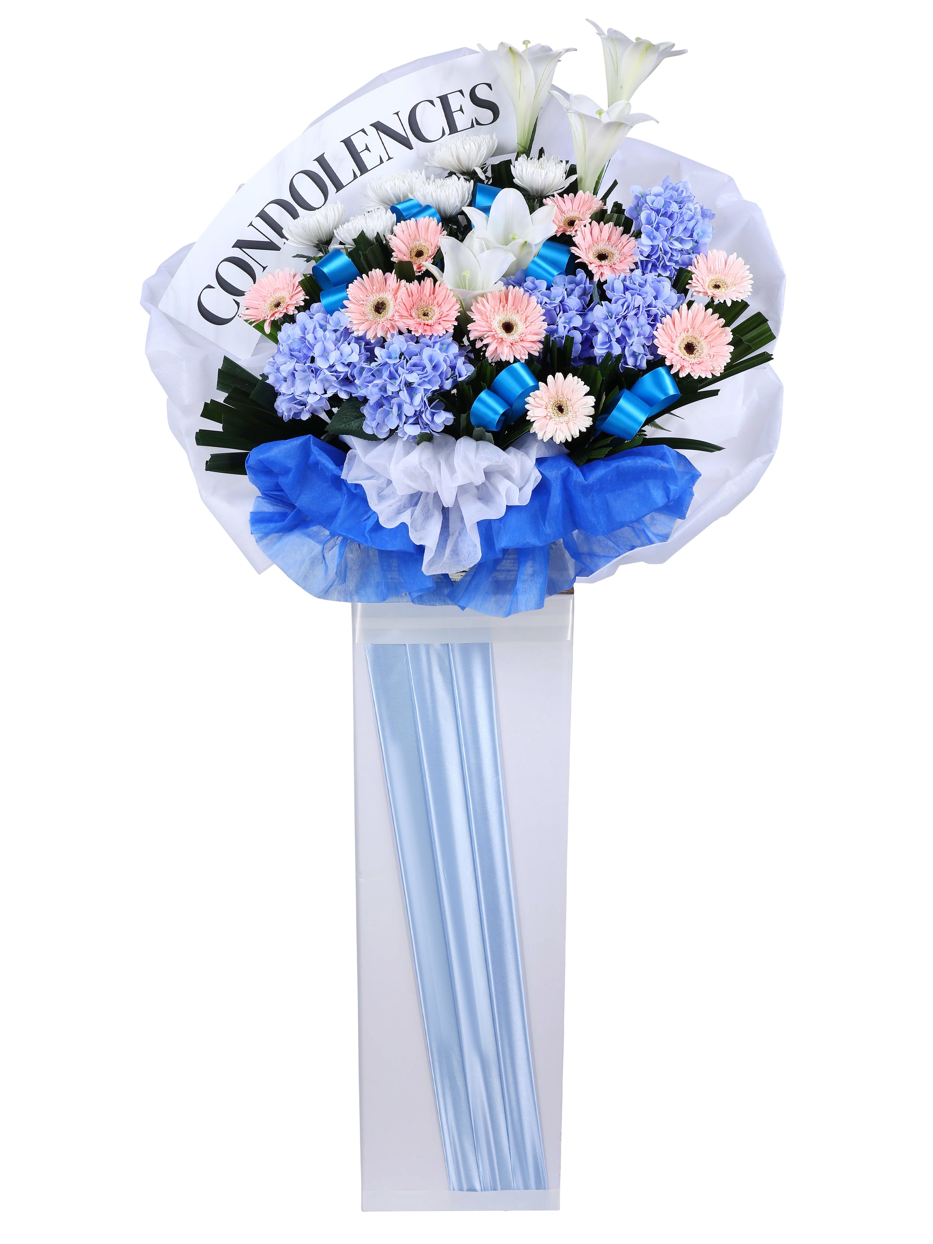 Condolence stand with fresh and silk flowers